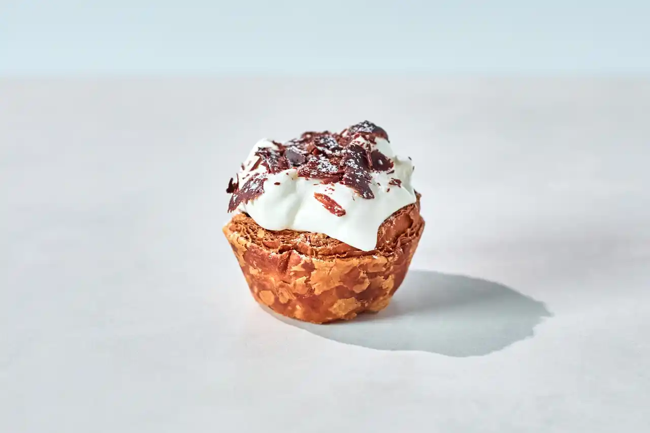 サクサク、ザクザクとしたクロワッサン生地に、自家製の生キャラメル、カスタードクリーム、バナナ、生クリームシャンティを重ね、仕上げにチョコレートを薄く削ってのせた一品。 異なる食感と味わいが重なり合い、出来立てならではの美味しさをお楽しみいただけます。 |