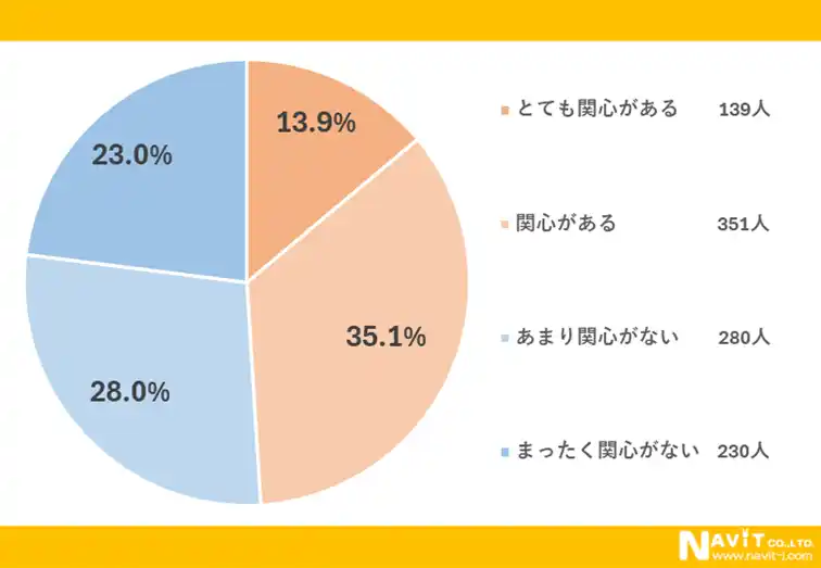 | ガーデニングへの関心についてたずねたアンケートです。「とても関心がある」と回答した人は13.9%、「関心がある」と回答した人は35.1%で、合計すると49.0%と、ほぼ半数の人がガーデニングに関心を持っていることがわかりました。 | |||