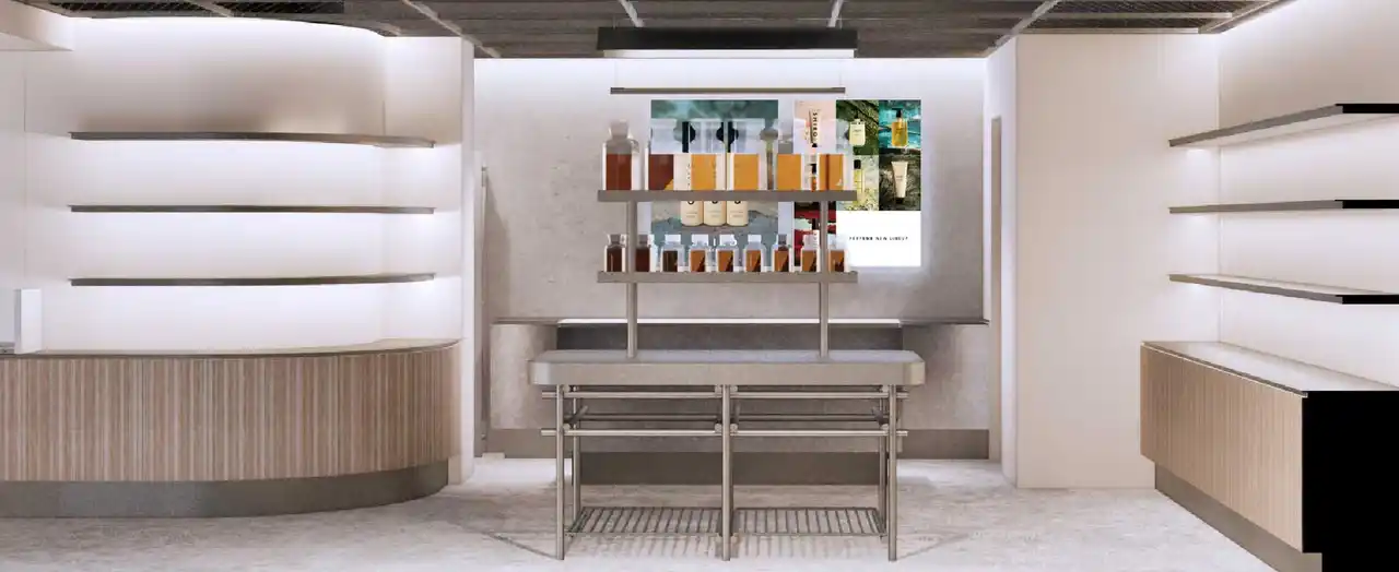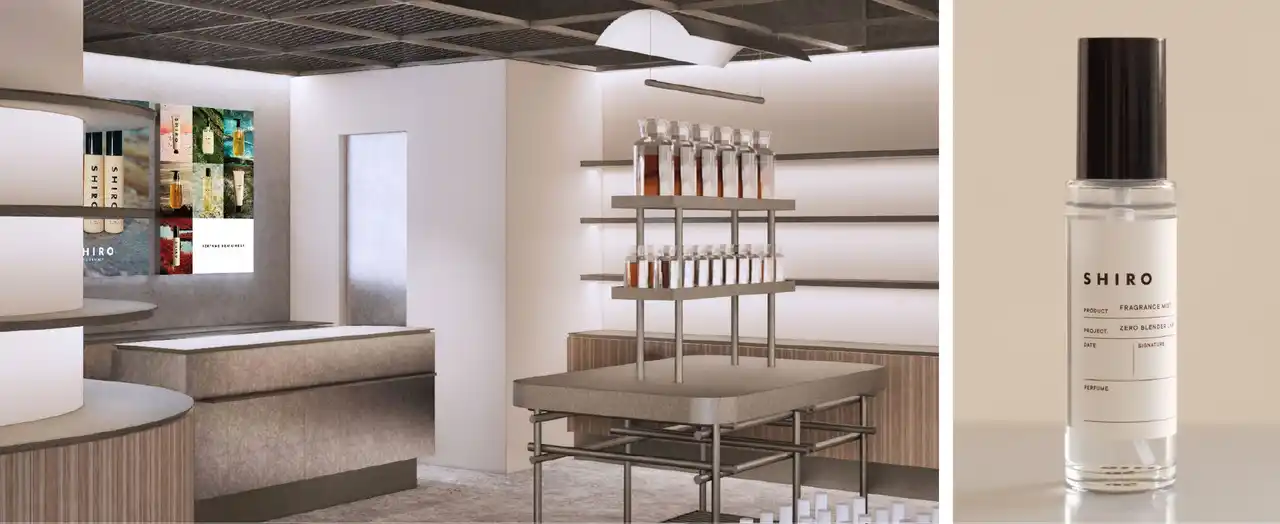 私たちは2024年から廃棄物ゼロを目指し、ものづくりとお店づくりに取り組んでいます。香港のお店では、廃棄されるはずだった香料を使って、北海道砂川市にある「みんなの工場」の研究開発室をイメージした空間で、まるで調香師のようにフレグランスの調合体験ができる、「ゼロブレンダーラボ」が登場します。 |