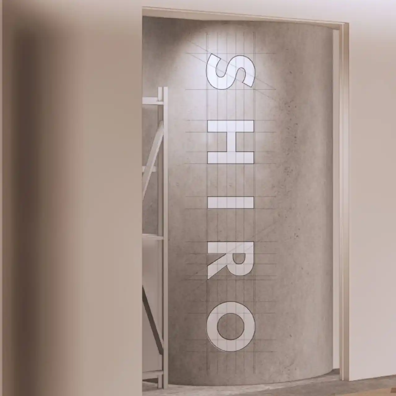 香港の日常に根付いたこれら2つの資材に魅了され、お店づくりには数回足場に使われ、その役目を終えると廃棄されてしまう竹を再生させたいと思いました。幾度か使用された竹は、歴史を刻んだからか色の変化や傷さえも美しく見えます。それらを什器の側面に縦に並べた様子は香港の歴史を物語り、ブリキはレジカウンターやストックドアへ使用しました。さらにSHIROはブランドのすべてを開いているように、パブリック通路に面したストックは今回開くことにしました。また、通路にあるブランドロゴはレタリングのベース ラインをあえて残し、手書きでペイントします。 |
