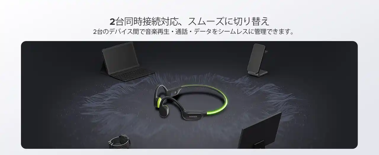 2台のデバイスに同時接続可能。スマートフォンとPCをシームレスに切り替え。 |