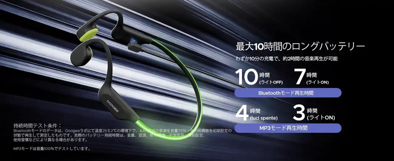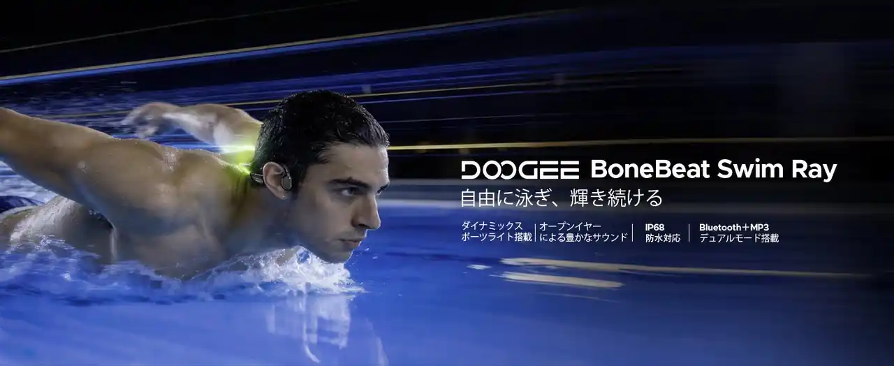 DOOGEEは、日本市場向けに最新の骨伝導イヤホン「BONEBEAT SWIMRAY」を発表しました。 通常価格15,900円のところ、赤字覚悟の56%OFFで6,900円にて期間限定販売を実施中です。数量限定のため、在庫がなくなり次第終了となります。本製品は、スポーツ・フィットネス・水泳・ランニングユーザー向けに最適化されたオープンイヤー型骨伝導イヤホンで、近年日本市場で注目を集める「防水イヤホン」「骨伝導ヘッドホン」「スポーツイヤホン」カテゴリーにおいて、圧倒的なコストパフォーマンスを実現しました。 |