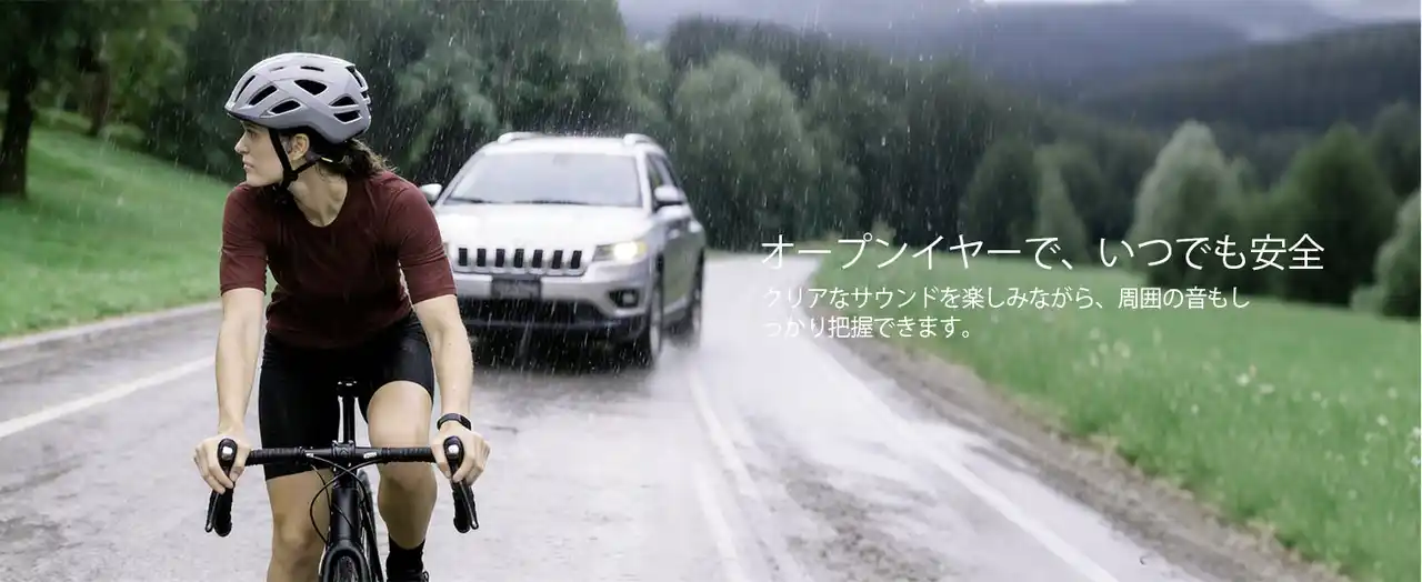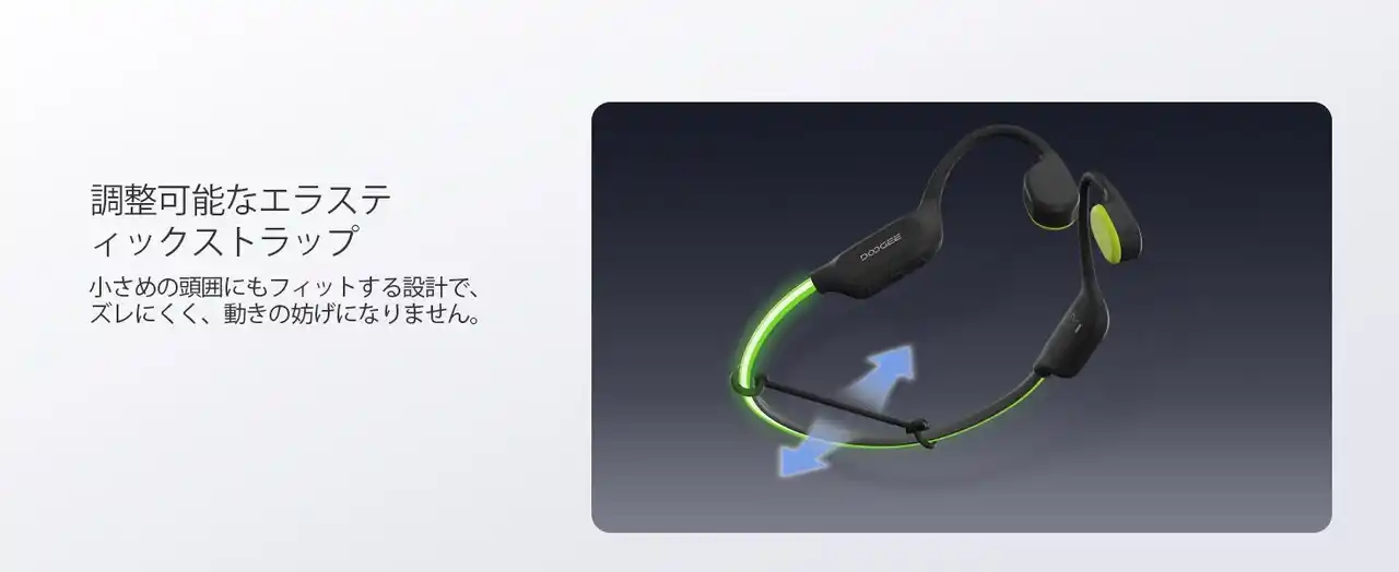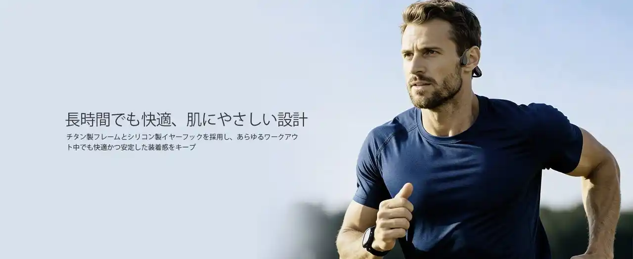 チタン合金メモリーワイヤーとシリコン素材を採用。 耳を塞がないオープンイヤー設計で圧迫感ゼロ、激しい運動中でもズレにくい設計です。 |