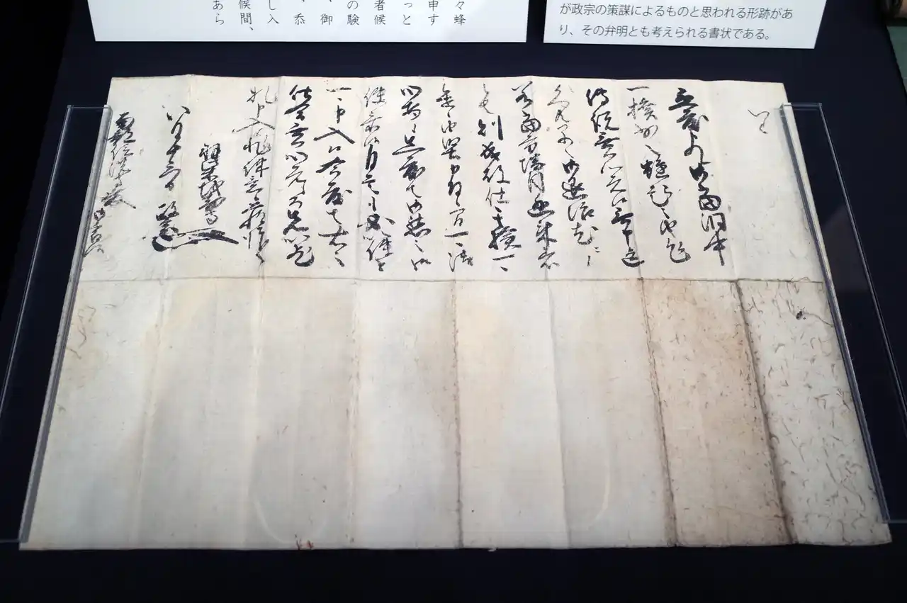 豊臣政権から羽柴姓を与えられていた伊達政宗の書状。和賀岩崎一揆の関連資料。 |