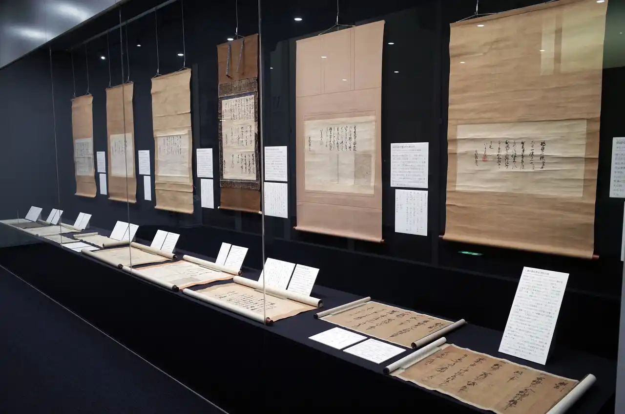 展示室情景:南部家に与えられた天正~慶長年間の豊臣秀吉朱印状が壁一面に並ぶ |