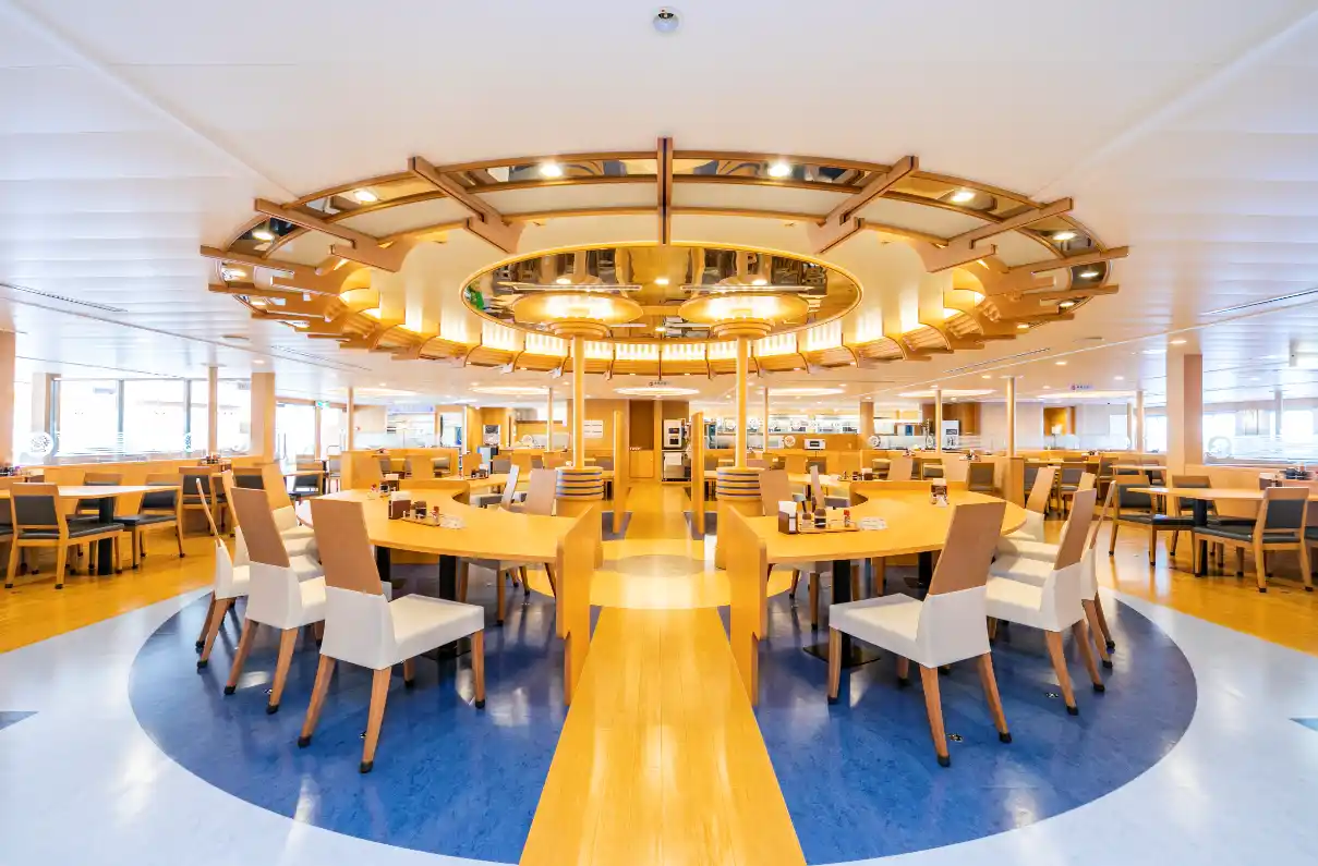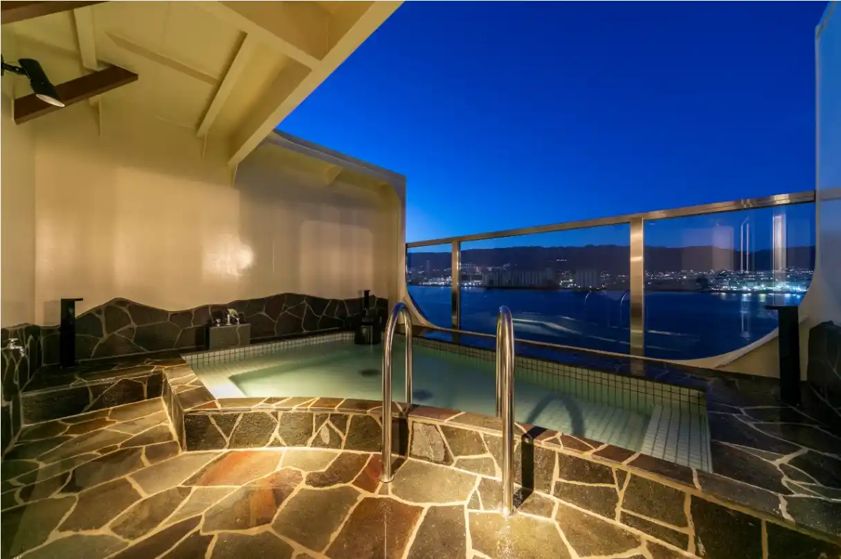 | 船内大浴場には露天風呂も完備。瀬戸内の満天の星やライトアップされた橋・街並みの夜景と海上の風を感じる露天風呂もお楽しみいただけます。 | ||||||||||