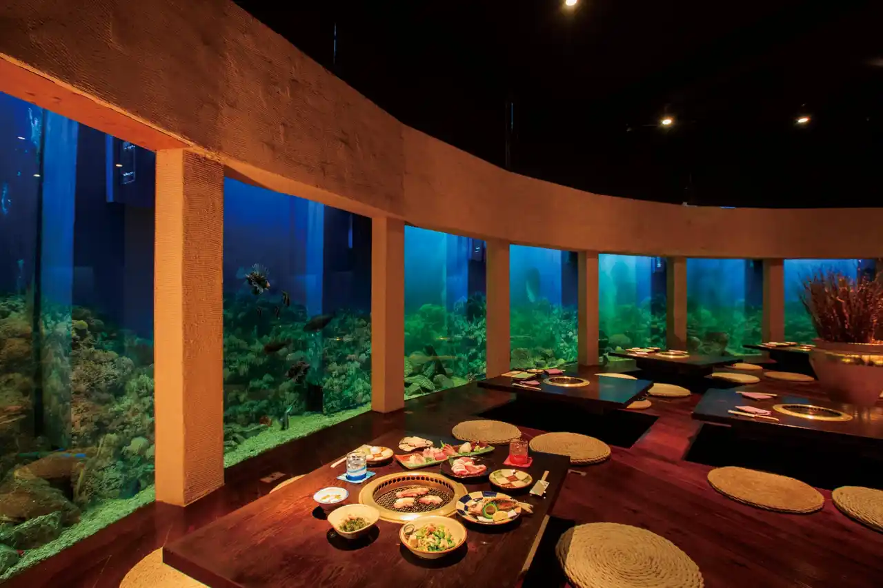 サンセットBBQや琉球炭火焼、寿司、日本料理、フレンチ、鉄板焼など、個性的な9ヶ所のレストラン & バー、山田温泉、タラソテラピーサロン、「THE NORTH FACE/HELLY HANSEN」のほか、5つのショップが揃い、子どもから大人まで上質なリゾートステイをご堪能いただけます。ロングステイの特典「Club Savvy」や記念日のおもてなしも好評です。 |