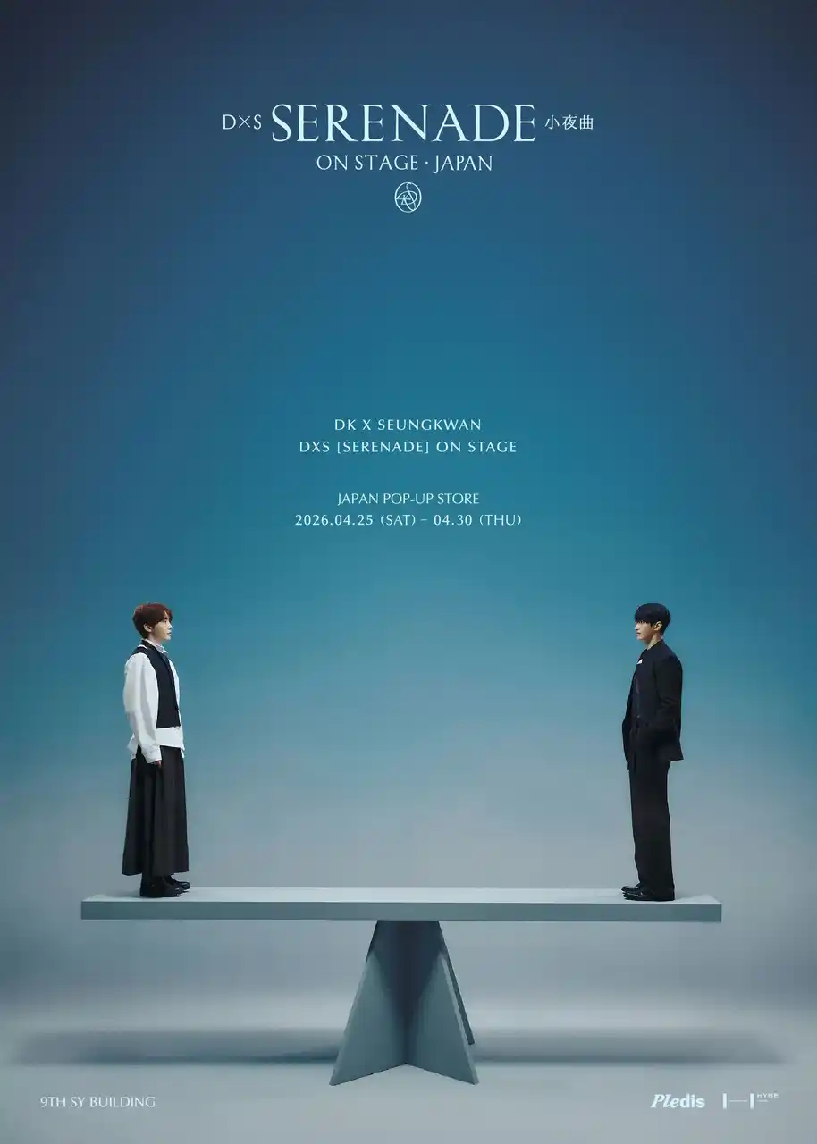 | 世界で活躍する13人組グループSEVENTEENのDKとSEUNGKWANのユニットDxS (SEVENTEEN)の初の単独公演『DxS [SERENADE] ON STAGE - JAPAN』の開催を記念して、4月25日(土)~4月30日(木)の6日間限定でPOP-UP STORE『DxS [SERENADE] ON STAGE - JAPAN POP-UP STORE』をオープンします。 | |||||||||||||||||||
