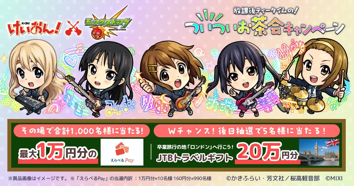 アニメ『けいおん!』×モンストコラボ記念!放課後ティータイムの!ついついお茶会キャンペーン |