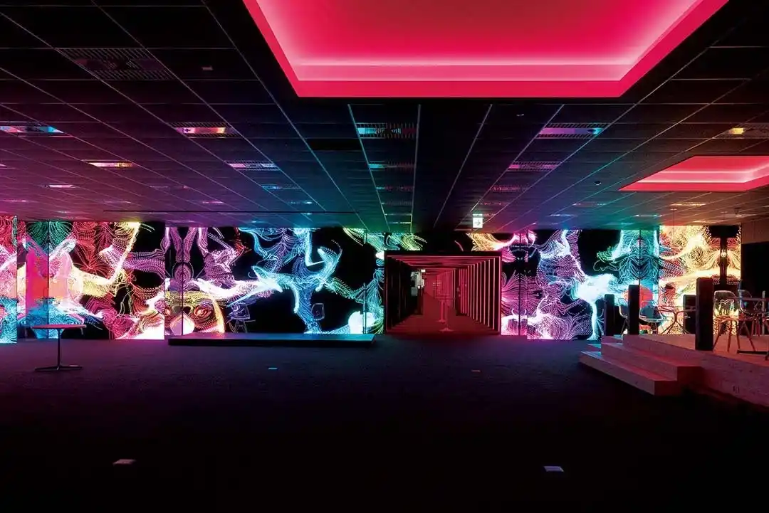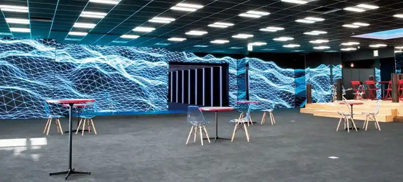 | 施設のオープンラウンジには幅20メートル、高さ3メートルの大型LEDサイネージ「トンネルグランドビジョン」が設置され、様々な映像コンテンツの発信、イベントやセミナーでのスクリーン使用など幅広い活用が可能。またオープンラウンジとメンバーラウンジを繋ぐ「ビッグゲートトンネル」は、新しいことへの挑戦、Game Changerを目指す場への旅路を表現するなど、感性を刺激する空間となっています。 | |||