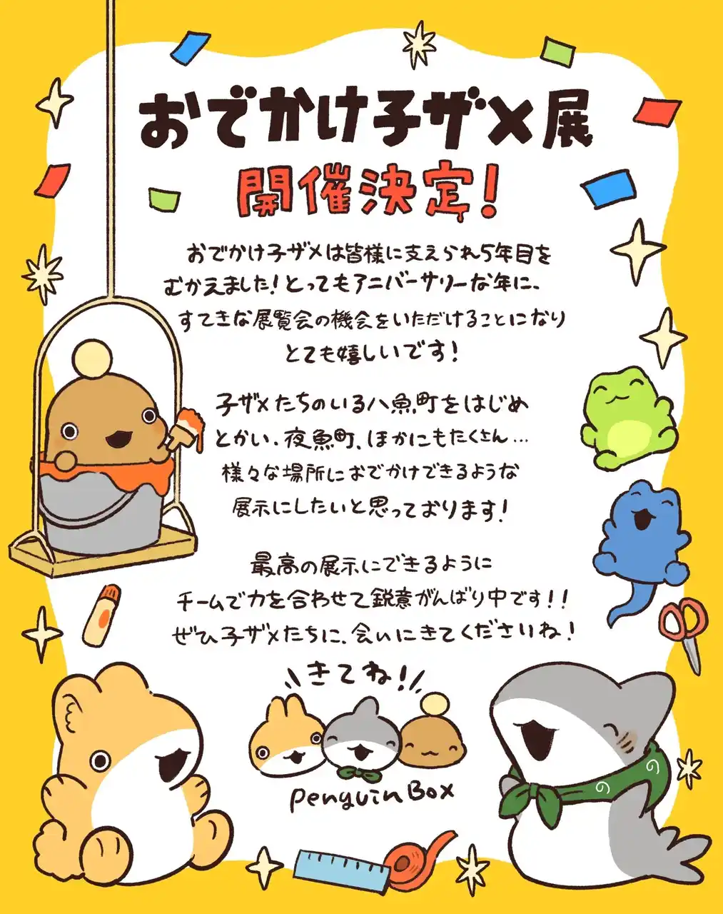 そんな『おでかけ子ザメ』5周年を記念して、シリーズ初の展覧会を開催します。 |