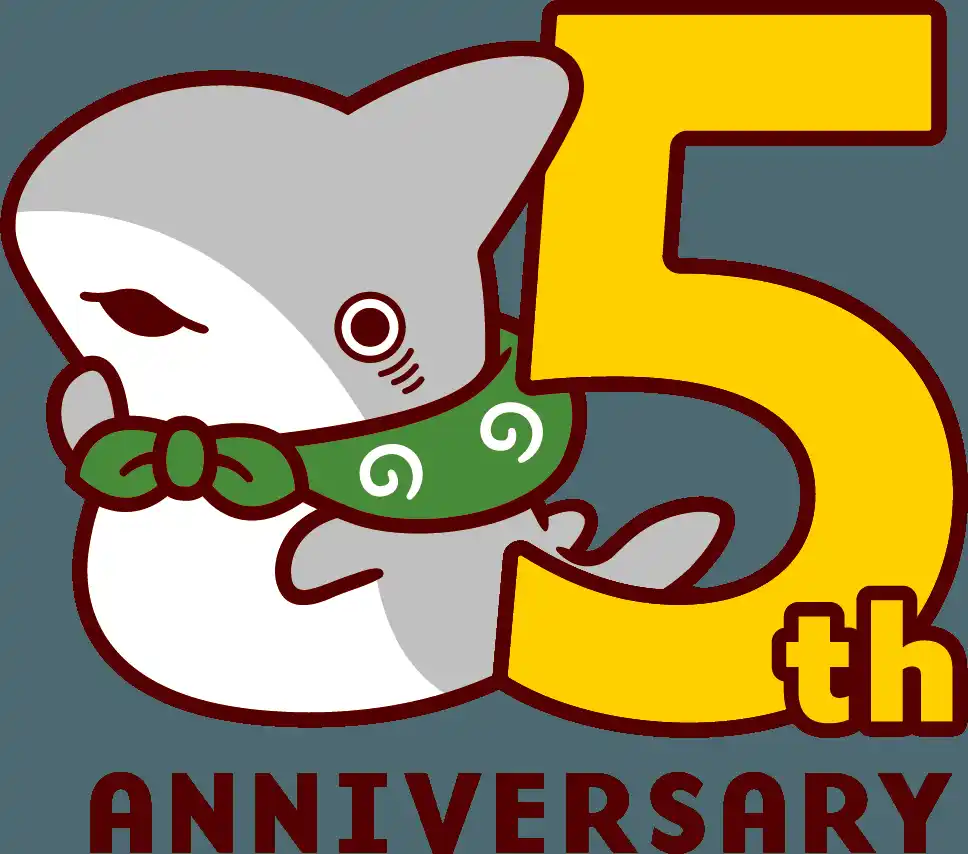 『おでかけ子ザメ』5周年ロゴ |