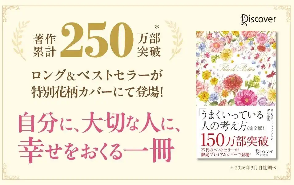株式会社ディスカヴァー・トゥエンティワン(本社:東京都千代田区、代表取締役社長執行役員:谷口奈緒美)は2026年4月24日に『うまくいっている人の考え方 完全版 プレミアムカバー 花柄ピンクゴールド(ディスカヴァー携書)』(ジェリー・ミンチントン著、弓場隆訳)を刊行しました。 |