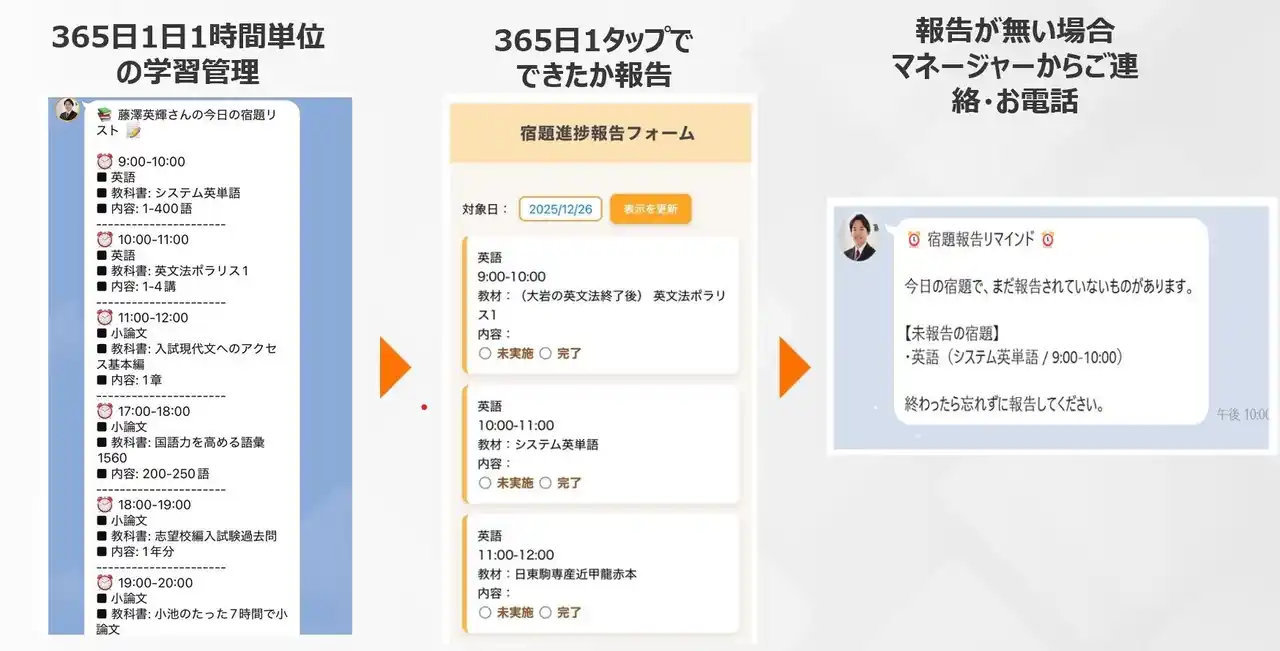 | 1.毎朝、学習管理マネージャーがその日の学習スケジュールを送付 | |||
