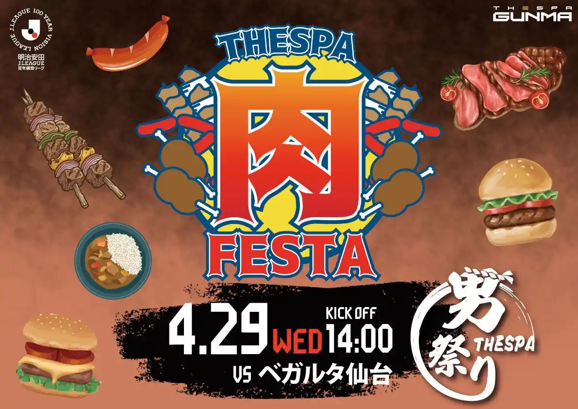 <THESPA肉FESTA> 4月29日、ザスパ横丁で、肉を食べよう!! |