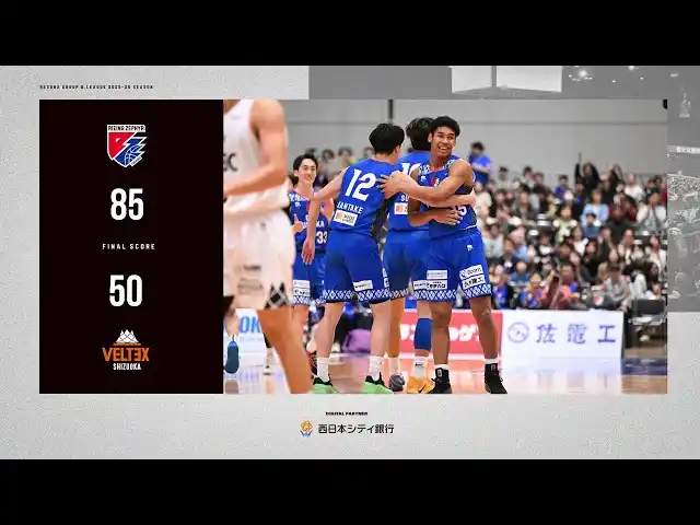 | 2026年4月26日(日)に開催した、りそなグループ B.LEAGUE 2025-26 シーズン【ライジングゼファーフクオカ vs.ベルテックス静岡】戦は、“福岡 85-50 静岡”で福岡の勝利となりました。 | |||