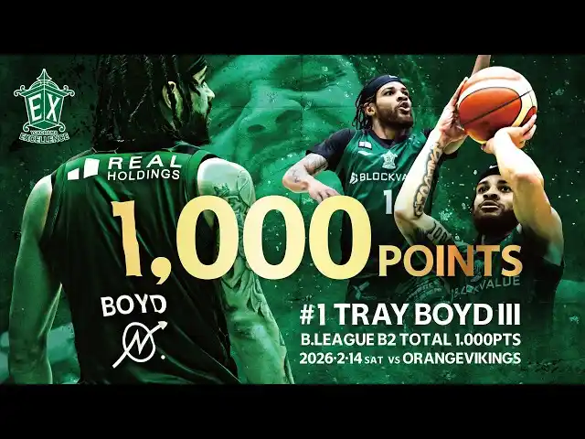 いつも横浜エクセレンスを応援いただき、ありがとうございます。 この度、公益社団法人ジャパン・プロフェッショナル・バスケットボールリーグ (東京都文京区、チェアマン:島田慎二 以下「B.LEAGUE」) より「りそなグループ B.LEAGUE 2025-26 B2リーグ戦」のリーダーズが発表され、横浜エクセレンスからは「#1 トレイ・ボイドIII」が得点王を受賞することになりましたので、お知らせいたします。 B2昇格初年度での受賞、おめでとうございます! そしてまもなく開幕を迎える「りそなグループ B2 PLAYOFFS 2025-26」での活躍もぜひご期待ください! |