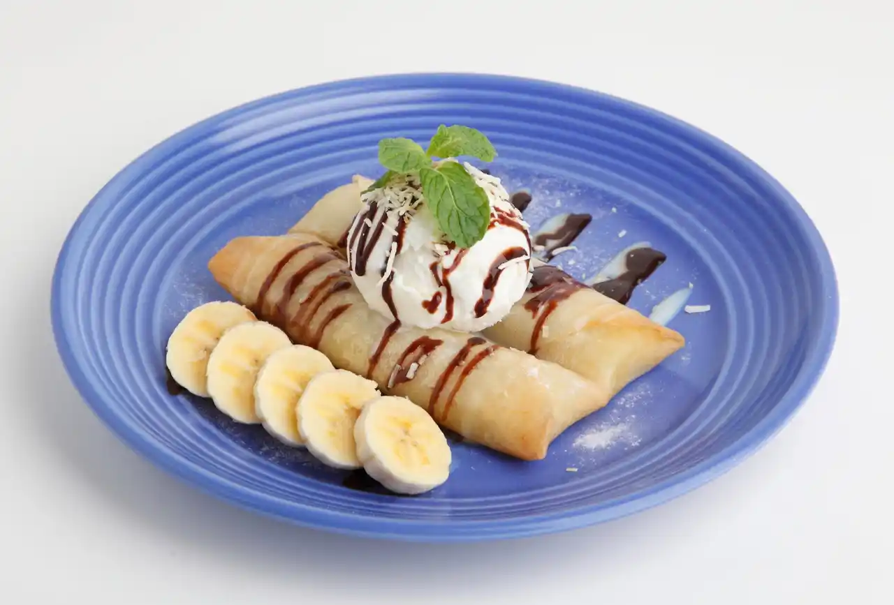 パリッパリの熱い春巻きの中から、甘熟王バナナの甘みが溢れ出るデザート春巻きです。熱々のバナナと冷たいココナッツアイスの組み合わせは、相性バッチリです! 優しい甘さをお楽しみください。 |