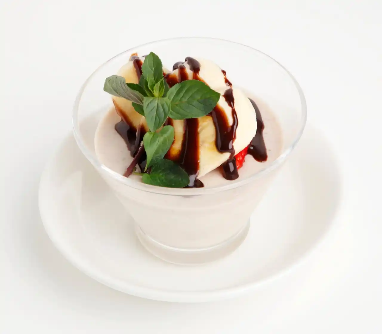 甘熟王バナナの自然な甘みと香りを生かした杏仁豆腐に、スライスバナナをのせました。相性抜群 |