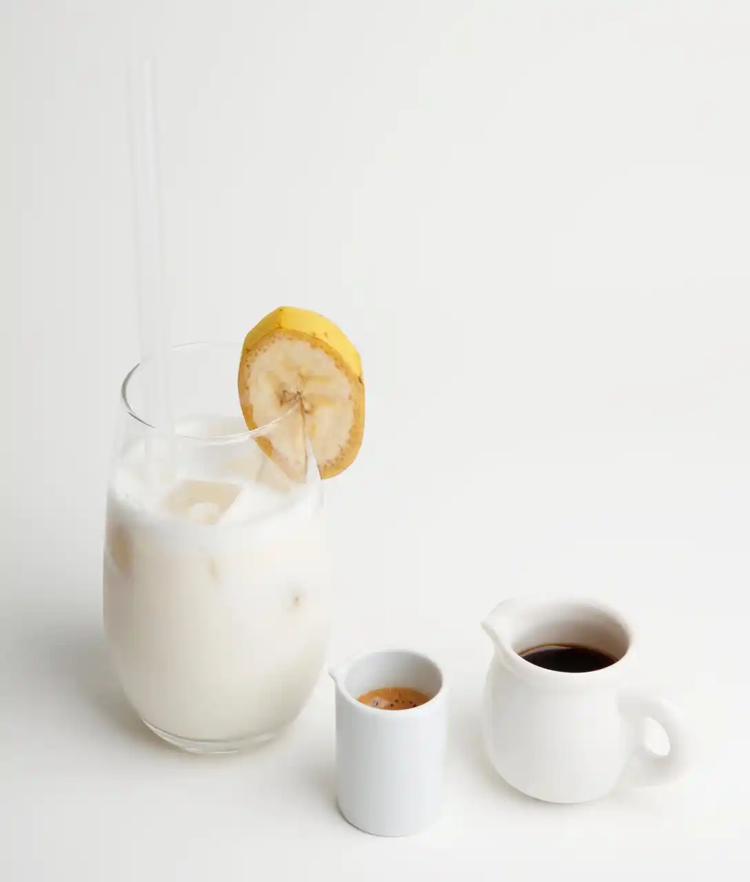 甘熟王バナナをなめらかなスムージーに仕上げました。エスプレッソ、またはカルーア(コーヒー |