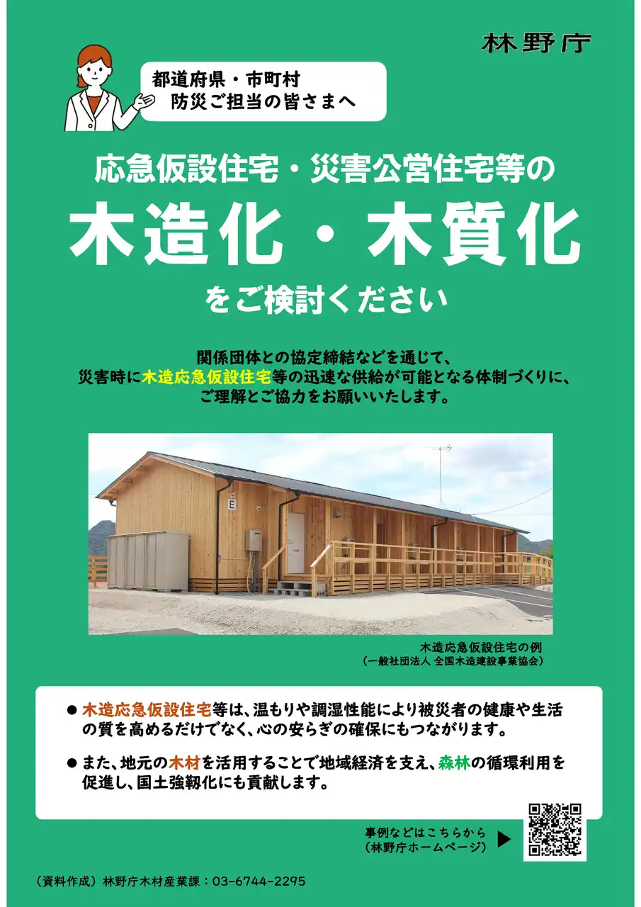 林野庁:応急仮設住宅等における木材の活用について(取組事例)(令和8年4月発行) |