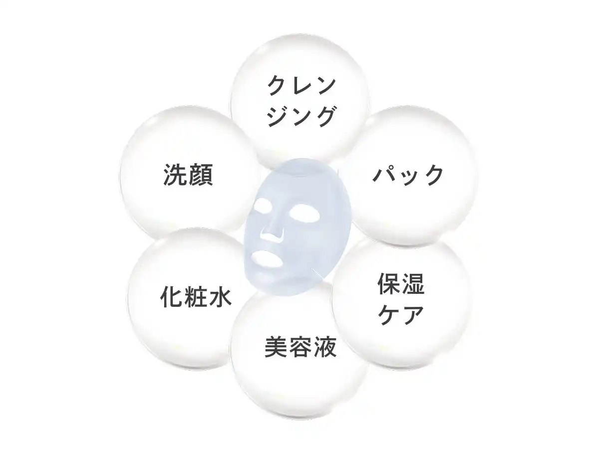 クレンジング+洗顔+化粧水+美容液+パック+保湿ケアが1枚で完了します。 |