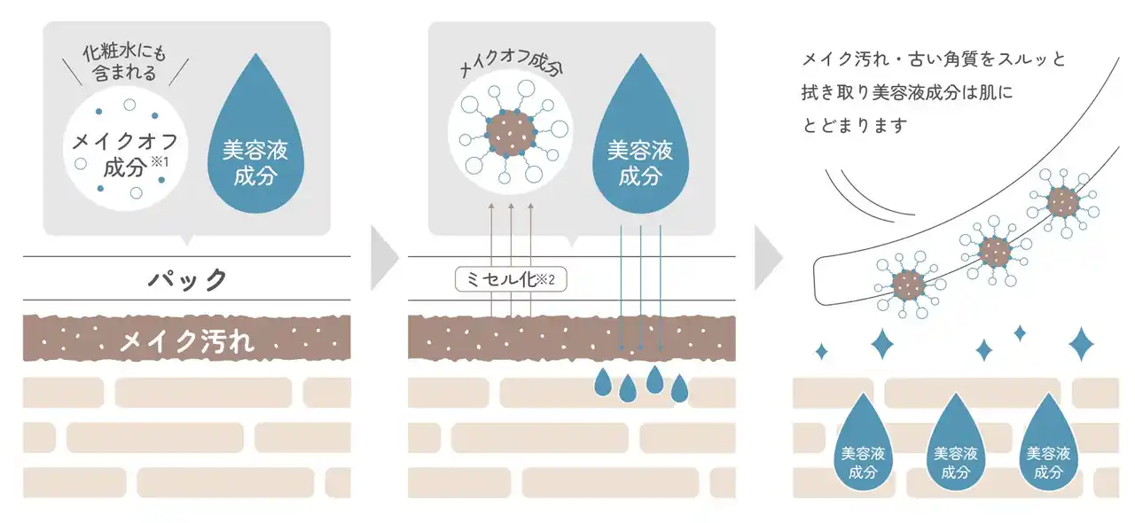 化粧水でも使用されるメイクオフ成分がメイク汚れや古い角質を浮かせてするっと落とします。 |