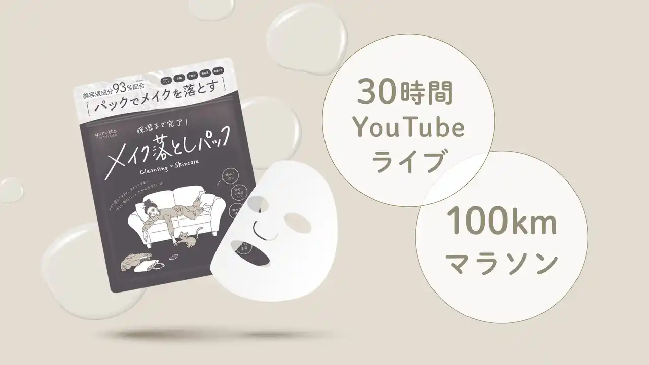 2026年5月1日に、TELESA TOKYOの姉妹ブランドyurutto(ゆるっと)から「メイク落としパック」が発売開始。発売を記念して、30時間YouTubeライブ&100kmマラソン開催!