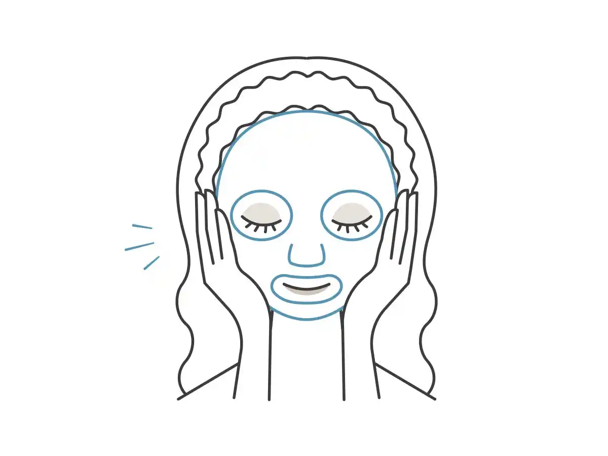 メイクの上からフェイスマスクを装着し、1~5分程度、メイクに美容液を馴染ませます。 |