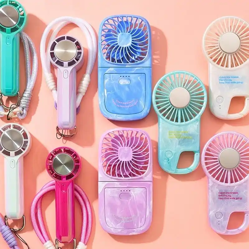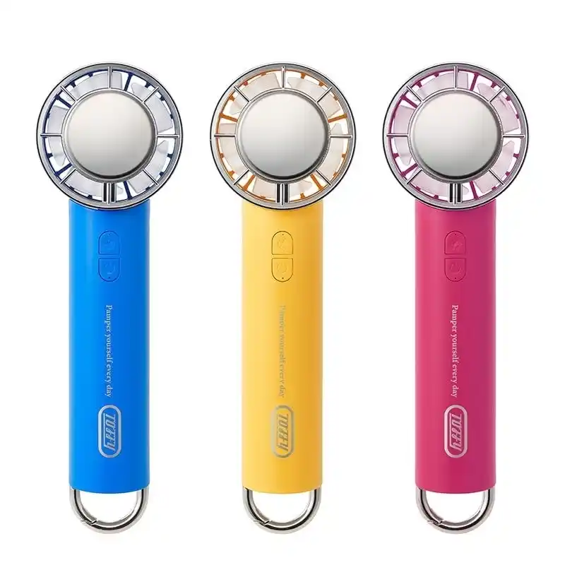 PLAZA BASICS 冷却機能付き ミニハンディファン (ホワイト、ミント、パープル、ピンク) 各3,410円 |