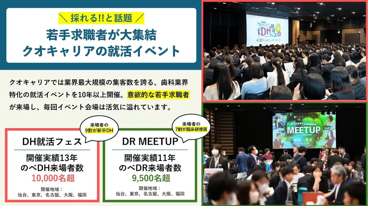 株式会社クオキャリア(本社:東京都豊島区)は、歯科衛生士・歯科医師の採用活動における「対面機会」の価値と活用方法をまとめた最新資料を無料公開しています。 |