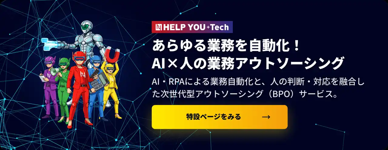 こうした課題に対し、HELP YOUは、AIと人を組み合わせた業務支援に特化した「HELP YOU+Tech」のサービスを開始しました。 |