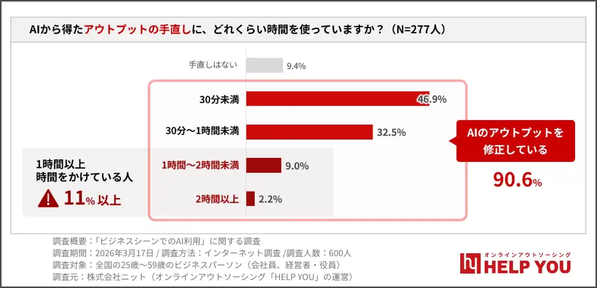 ・AI利用者の90.6%が出力を手直し |