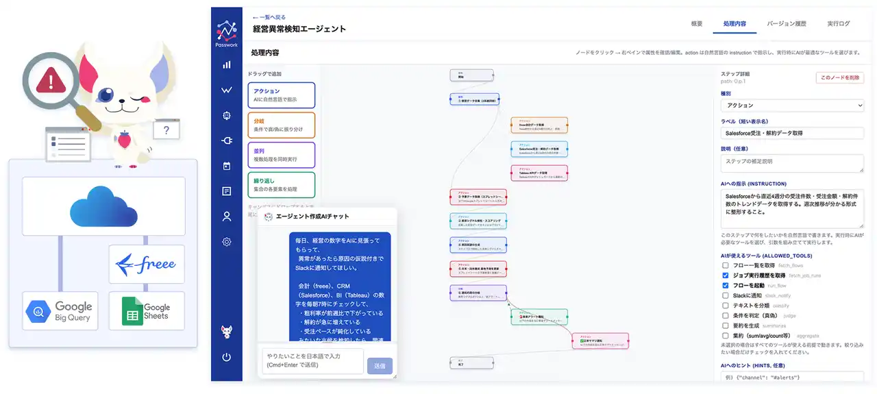 Passworkによる、経営数値の異常検知エージェントの設定画面 |