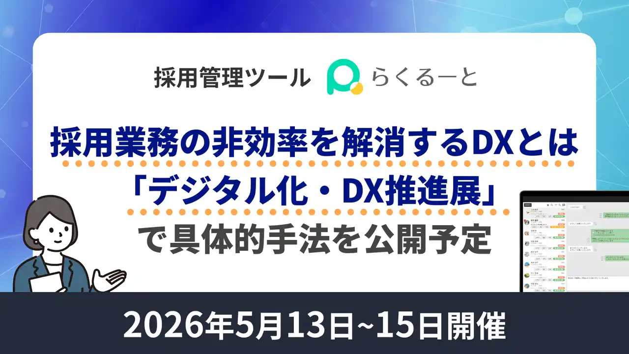 株式会社アイシス(本社:東京都渋谷区)が提供する採用管理ツール「らくるーと」は、2026年5月開催の「デジタル化・DX推進展」において、採用業務の効率化を実現する具体的な手法を展示します。 |