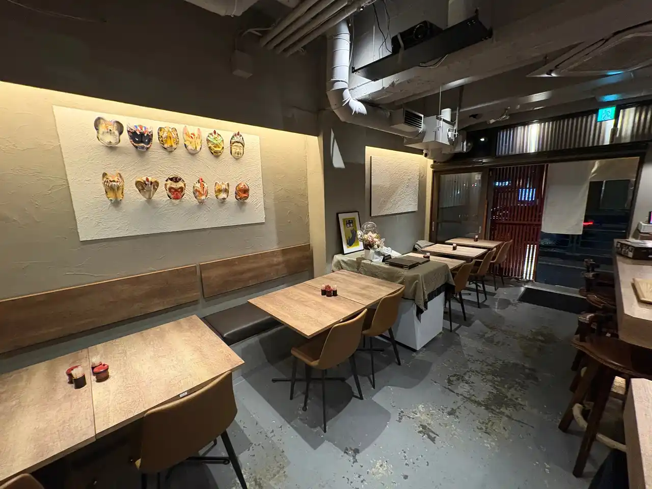 店内は、京都・嵯峨面をイメージした十二支に囲まれた、縁起のよい和の空間。 東京で忙しく働く方が、食事とお酒でふっと肩の力を抜き、少し元気になれる場所を目指しています。 |