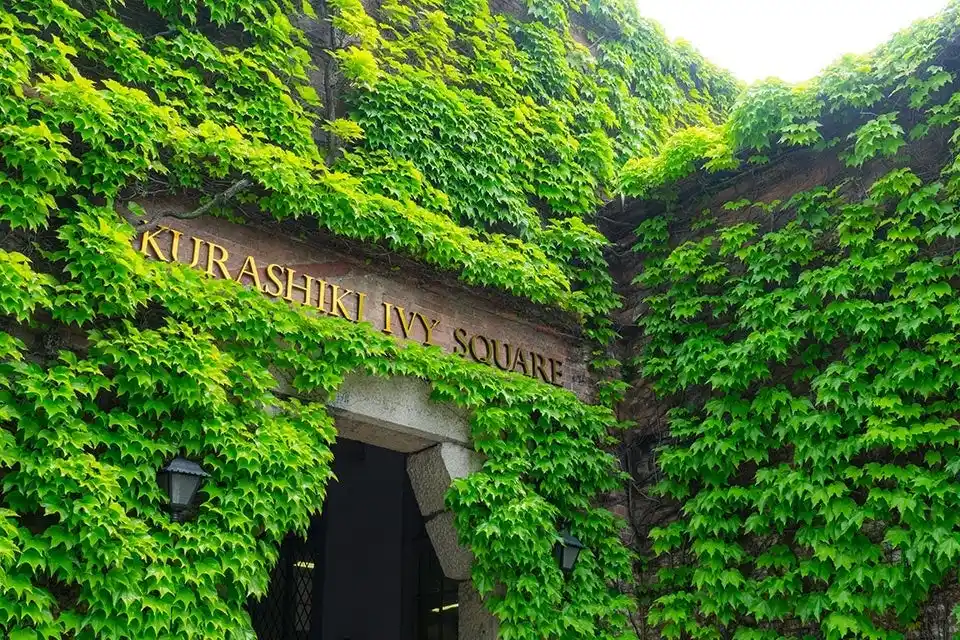 倉敷紡績の跡地さながらの品格を漂わせつつ、イギリス式で積み上げられた赤煉瓦館や、モネにゆかりのスイレンが浮かぶ中庭広場等、和の趣と西洋の美が、蔦に美しく絡まり時を刻む倉敷IVY SQUARE。 |