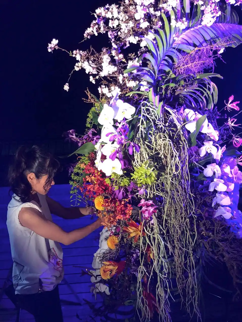 三菱地所・三井不動産・サントリー・ゼクシィ・au・日本橋三越本店・名古屋松坂屋本店・ヤナセ・ポニーキャニオン・東京タワー・東京ミッドタウン・二期倶楽部・瀬戸内リトリート青凪・SummerSonic・Fujirock festival など。 CM撮影の美術担当や、紙面広告・ディスプレイ展示・プライベートパーティー装飾・ファイヤーモニュメント制作・アートディレクションも手掛ける。 数々のアーティストやミュージシャン 伝統工芸作家とコラボレーションを重ねる彼女のスタイルは自身の表現領域を拡げ、 現在も国内外を問わず全国的な活動を繰り広げる数少ない装飾家である。 |