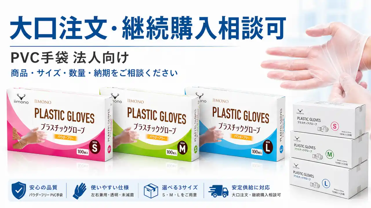 今回のPVC手袋入荷予定分について、ご注文数量に一律の上限は設けておりません。 大口注文、継続購入、定期的な補充をご希望の場合も、商品・サイズ・数量・ご希望納期に応じて個別にご相談を承ります。 |