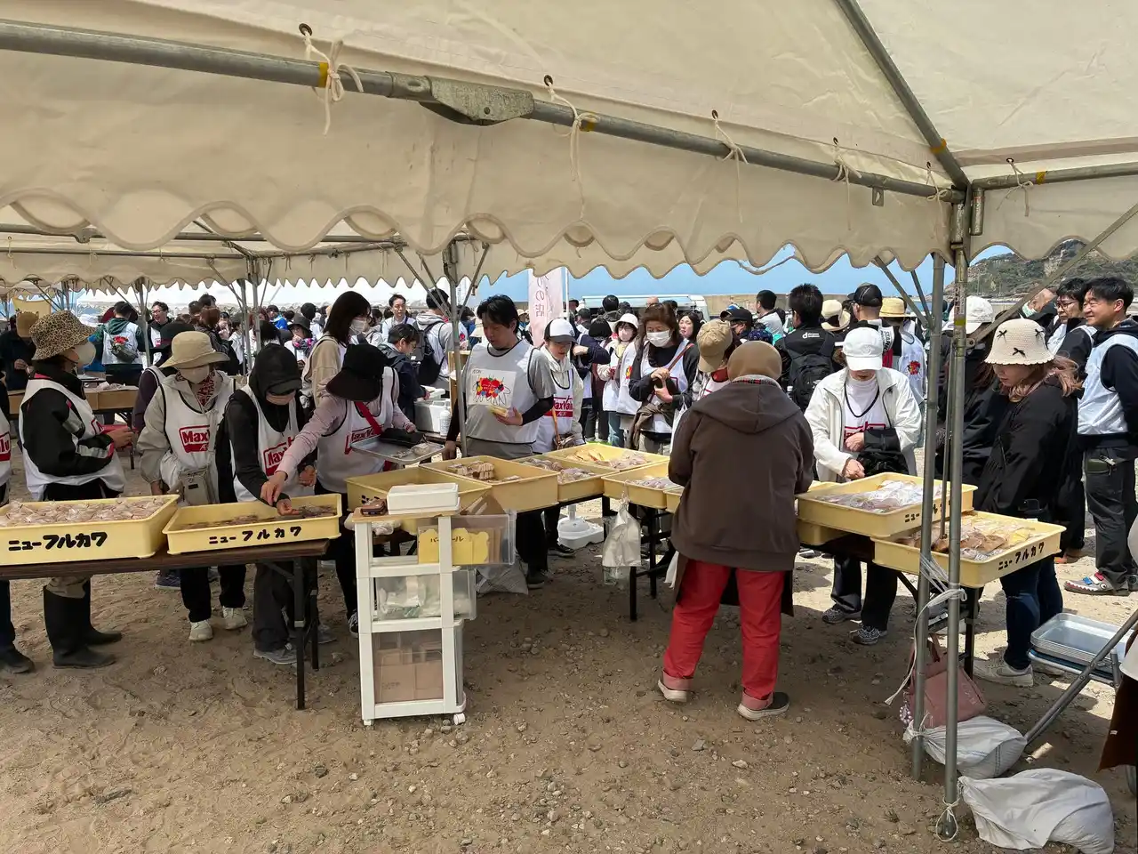 また、清掃活動後は黒島地区の皆さまが主体となり、ボランティア参加者と地元企業との交流会や物品販売も実施しました。 |