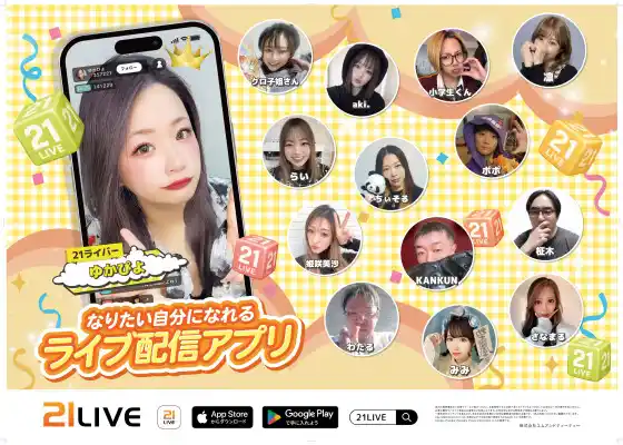 ポスターに掲載しているライバーの配信は、21LIVEのアプリ・サイトでご覧いただけます。