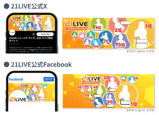 1~10位入賞で、21LIVE公式X&Facebookのプロフィール画像に出演!