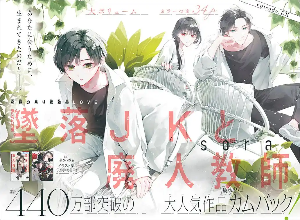 | 「墜落JKと廃人教師 番外編」(sora)が巻頭カラーで登場! | ||||||||||