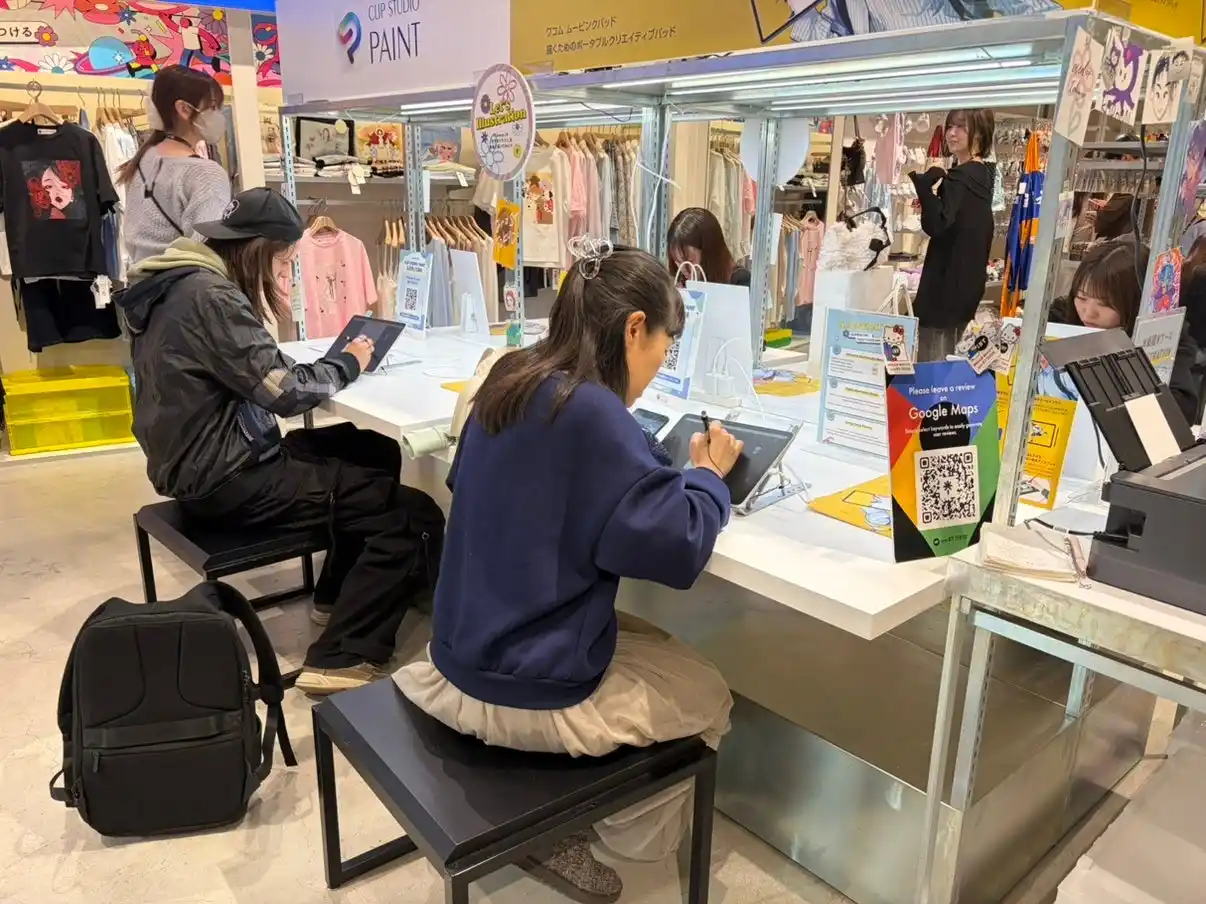 プロの現場で愛用される機材を贅沢に使用しながら、誰でも気軽にデジタルイラストを体験できるブース。初心者の方や、機材を触ってみたい方、自分だけのイラストを描いてみたい方など、どなたでもご自由にご参加いただけるブースです。 |