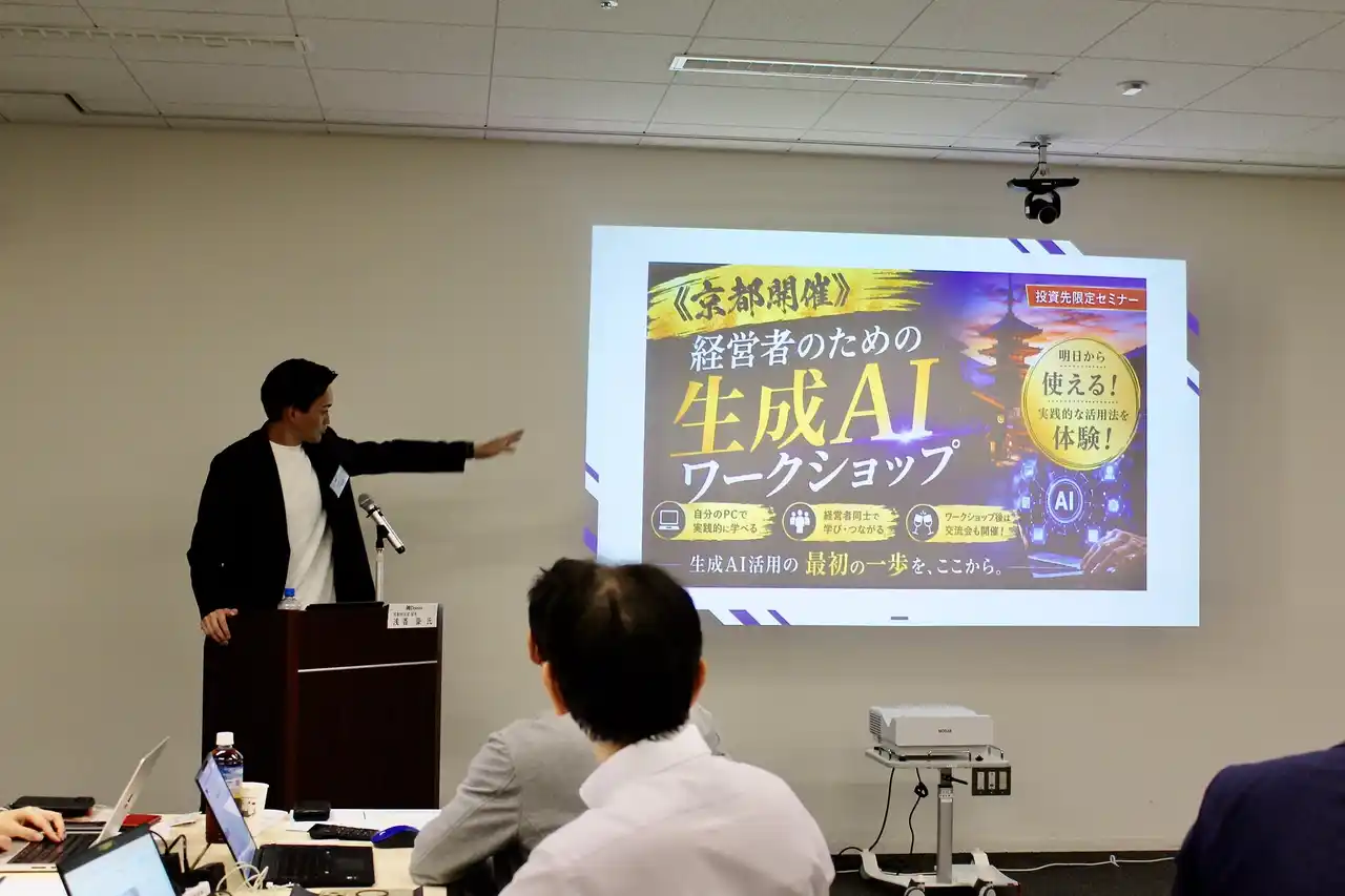 今回の京都開催では、過去のワークショップに参加された経営者が再び参加するケースも生まれました。最新の生成AIツールに改めて触れることで、自社での活用イメージをさらに具体化したい。そうした動機での再参加です。 |