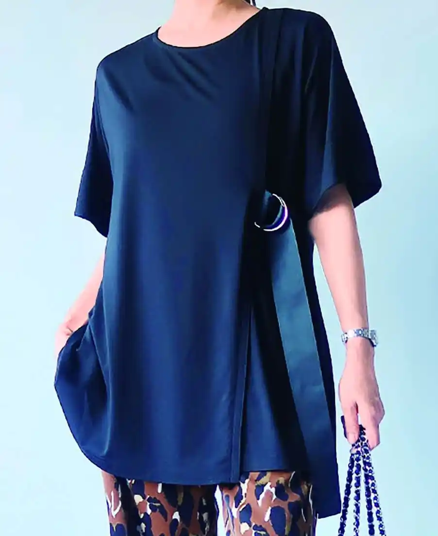 アクセントの、プルオーバーを紹介します。長めの丈でシャープなスタイルを演出します。 |