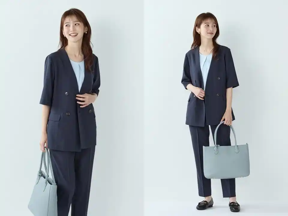 | シングルボタンジャケット・半袖ジャケット・テーパードパンツ:チャコールグレー、ネイビー | |||