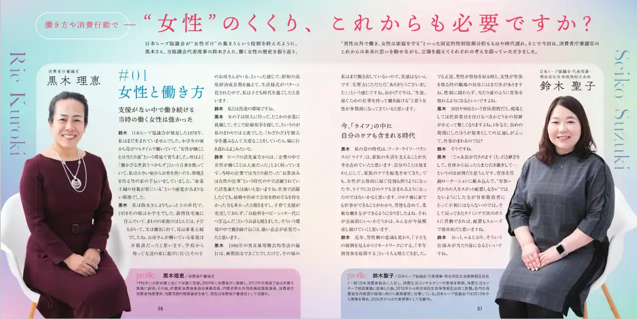 | 消費者庁審議官 黒木理恵 × 日本ヒーブ協議会代表理事 鈴木聖子 対談 | ||||||||||||