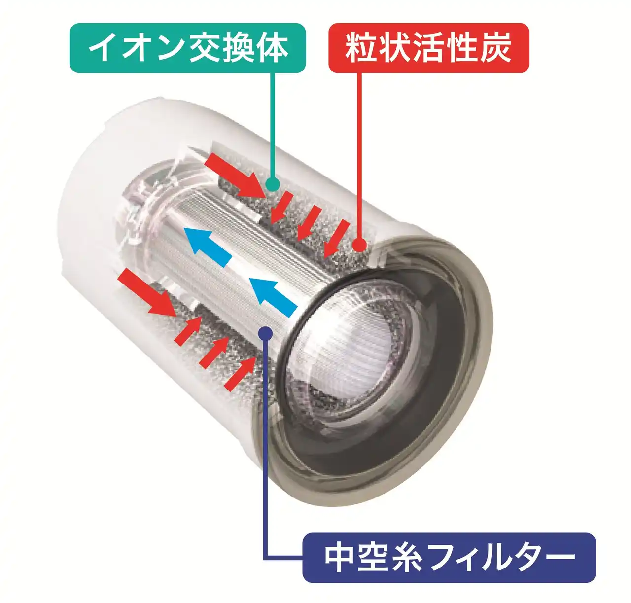 水の流路を変えることで浄水スピードアップを実現。ろ過流量は3.0L/分。従来品に比べろ過流量が約2倍になりました。 |