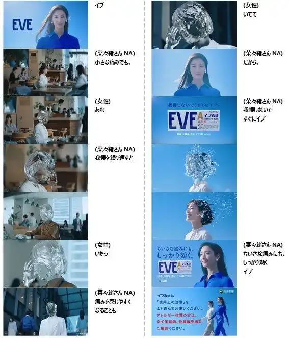 新TVCMでは、カフェやオフィスといった日常のシーンで、頭痛を感じながらも「一時的なものだから」と我慢してしまう女性の姿を、ヒビの入った「ガラスの女性」として象徴的に描いています 。カットが進むごとに増していくヒビと緊迫感のある演出は、放置することで痛みに敏感になってしまうリスクを表現しています 。そこに菜々緒さんが「だから、我慢しないで」と真摯に語りかけ、イブA錠による早期対処を提案します。薬を服用することで晴れやかな表情を見せた女性が、菜々緒さんとともに自信に満ちた笑顔で未来へと歩き出す、希望に満ちたストーリー展開が見どころです 。 |